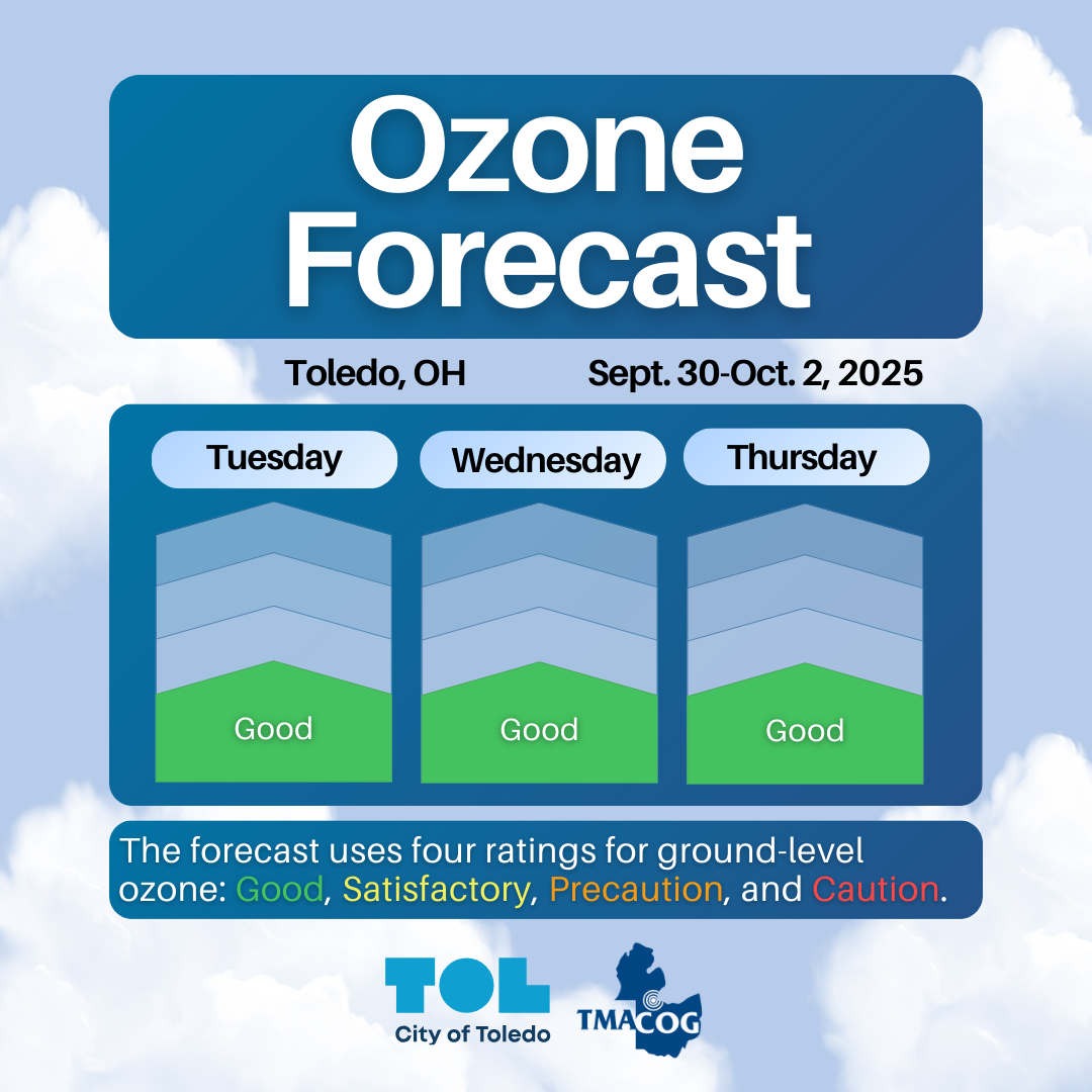 The City of Toledo uses weather data to release a twice-weekly forecast for ozone levels in the metropolitan area. Ozone is one of the major pollutants that negatively impacts air quality. Ground-level ozone can be dangerous during warmer months, especially for people with respiratory conditions.